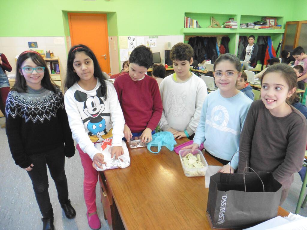 E facer unha boa degustación.Así, un día, sen avisar, nin imaxinar, Angélica e Nardos entraron pola porta da nosa aula cunha torta de ananás que prepararan tamén con Sabela...